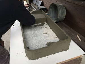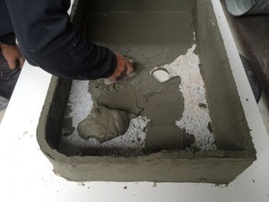 二日目です、底のモルタルも乾きましたので、タイルを貼る下地処理です。