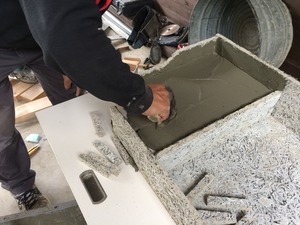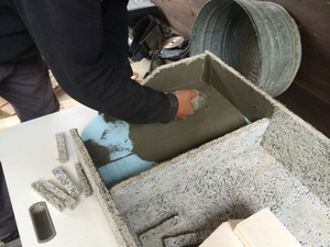次はモルタルを塗り木毛板でふたをします。