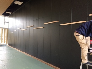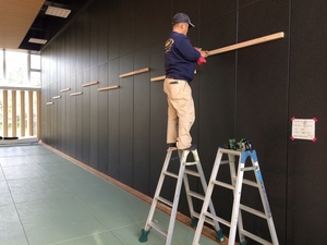 高校の柔道部の監督からトレーニングのために「壁に木を取り付けたい」と依頼が有り。