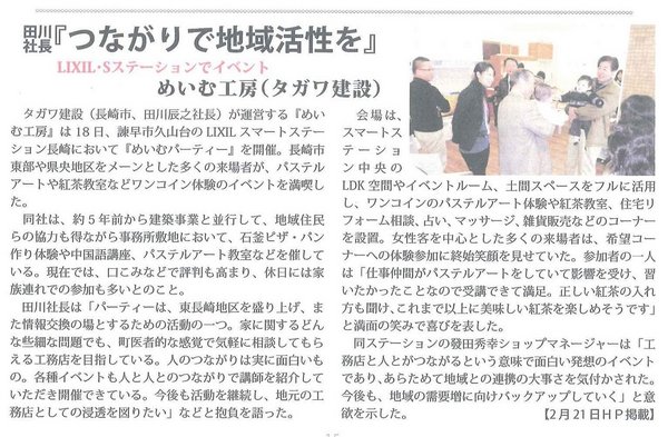 2月18日に開催しためいむパーティーワンコイン体験が建設情報誌C-net通信ながさきに載りました。