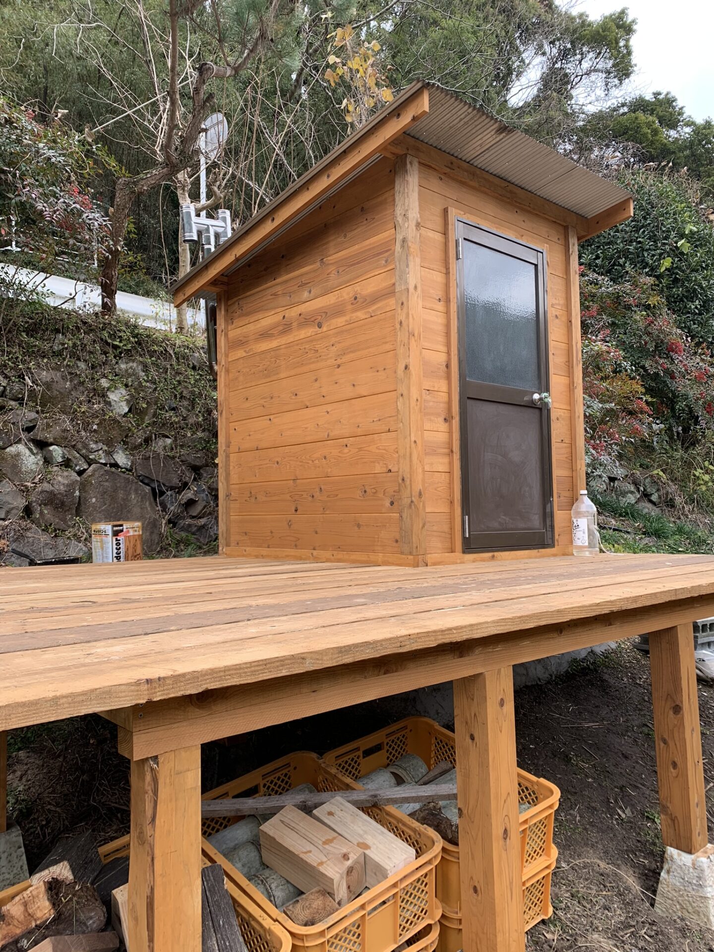 デッキを広げ、薪のストックスペースも確保し、